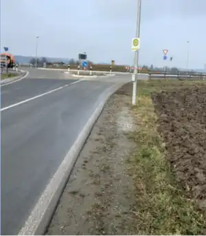 | kerb | lowered/flushed(ebenerdig) | an der Stelle der Plattformabsenkungen für Fußgänger. Diese werden mit einem Fußweg über die Plattform und/oder zur Straße verbunden. | ![]() |