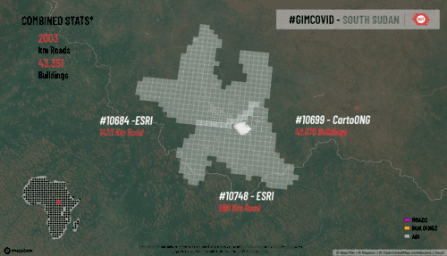 - April 2021: South Sudan Pilot. CartONG and ESRI GIS4SW Mapathons.These projects were focused on mapping roads using RapiD and buildings.