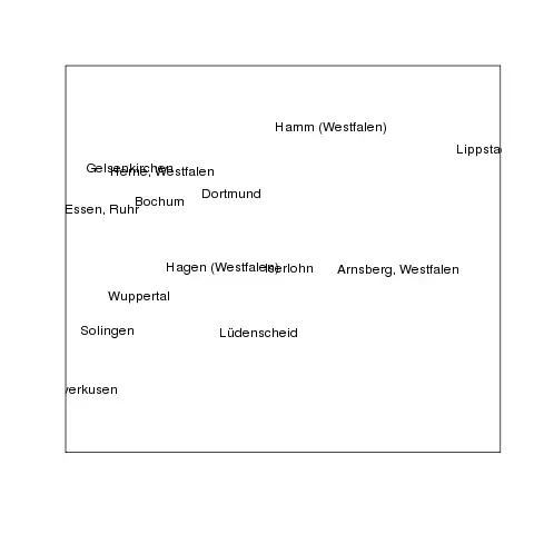 Dieses Verfahren ist bestrebt, die Karte gleichmäßig mit Ortschaftspunkten zu füllen. Dabei werden Gebiete mit mehr Städten nicht dichter angezeigt. Möchte man durch die Angabe von Namen doch mit andeuten, wo die Einwohnerdichte höher ist, bietet sich an, die Einwohnerzahl gemeinsam mit der Dominanz zu berücksichtigen. Bildet man die Rangfolge nach dem Produkt von Einwohnerzahl und Dominanz, erhält man die folgende Tabelle:
