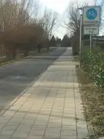 Getrennter Rad- und Gehweg Fußgänger und Radfahrer sind optisch voneinander getrennt (Linie, farbiges Pflaster, usw.). Der Rad- und Gehweg ist baulich durch einen Grünstreifen, Graben, Büsche, usw. von der Fahrbahn abgesetzt. Die Nebenlinie (Way B) beschreibt sowohl den Radweg als auch den Fußweg. |