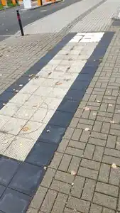 Achtung: Bodenindikatoren, die über Fläche verlaufen und nicht Teil eines existierenden Ways sind, müssen separat als mit tactile_paving=* erfasst werden.
