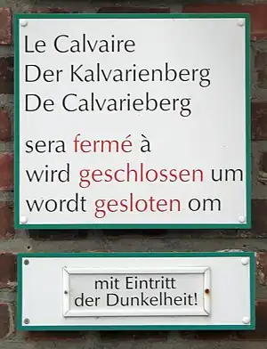 Einige wenige Straßen haben einen Namen, der in beiden Sprachen absolut identisch ist. Zweimal den selben Namen sollte man niemals aneinanderhängen (z. B. "Tomberg - Tomberg" macht keinen Sinn).