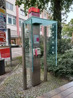 currency:EUR=yes/noIn welcher Währung werden Münzen akzeptiert?payment:coins=yes/nopayment:credit_cards=yes/nopayment:debit_cards=yes/nopayment:electronic_purses=yes/nopayment:notes=yes/nopayment:telephone_cards=yes/nopayment:calling_cards=yes/noIst die Nutzung von Calling-Cards möglich? Im Gegensatz zu Telefonkarten wird das Guthaben bei Calling-Cards nicht auf der Karte, sondern zentral beim Telekommunikationsdienstanbieter gespeichert. Calling-Cards arbeiten üblicherweise mit einer Einwahlnummer, nicht mit einem Chip. Die Telefonkarte Comfort der Telekom allerdings, als Nachfolger der T-Card, vereint wiederum beide Systeme: Telefonieren kann man sowohl über das Auslesen des Kartenchips als auch mithilfe einer Einwahlnummer. Sie kann daher sowohl als Telefonkarte als auch als Calling-Card angesehen werden.payment:reverse_charge_calls=yes/noum anzugeben, ob von dem Telefon aus R-Gespräche möglich sind. Ein R-Gespräch ist ein Telefonat, dessen Kosten der Angerufene übernimmt (nach seiner vorherigen Zustimmung, z. B. durch Drücken ein oder mehrerer Tasten). Zwar hat die Deutsche Telekom ihr Angebot der R-Gespräche Ende 2020 komplett eingestellt, aber über einen Umweg sind R-Gespräche ins deutsche Festnetz nach wie vor von öffentlichen Telefonen aus möglich. Dazu wählt man von der Telefonzelle aus die 0800er-Nummer eines entsprechenden Anbieters vor (z. B. R-Call-by-Call oder Yoo R-Call) und wählt erst danach die Nummer des Gesprächspartners, den man erreichen möchte. Die Kosten werden dann über dessen Telefonrechnung abgerechnet.