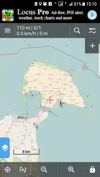 Το Locus αποθηκεύει αυτόματα τους χάρτες OpenSeaMap στην προσωρινή μνήμη της συσκευής όταν οι χάρτες προβάλλονται ηλεκτρονικά στη συσκευή. Όλοι οι αποθηκευμένοι χάρτες θα είναι διαθέσιμοι εκτός σύνδεσης. Το OpenSeaMap μπορεί να βρεθεί στο Locus στο μενού "Χάρτες" (το εικονίδιο χάρτη επάνω δεξιά):