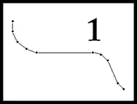 Fig.1 Ühe joone pikkus võib olla üsna erinev. Kui tee on väga käänuline, siis on vaja palju lõike ja sõlmi. Kui tee on noolsirge ilma kõrvalteedeta, siis piisab kogu vahemaa jaoks ühest lõigust. Joonisel 1 on näha, et tee keskel oleva sirge osa jaoks piisab ühest lõigust.