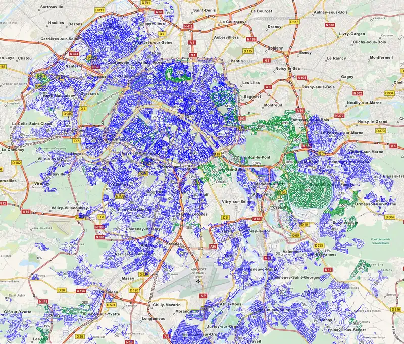 - ● nom de voie noir : voie nommée dans OSM mais sans correspondance dans FANTOIR