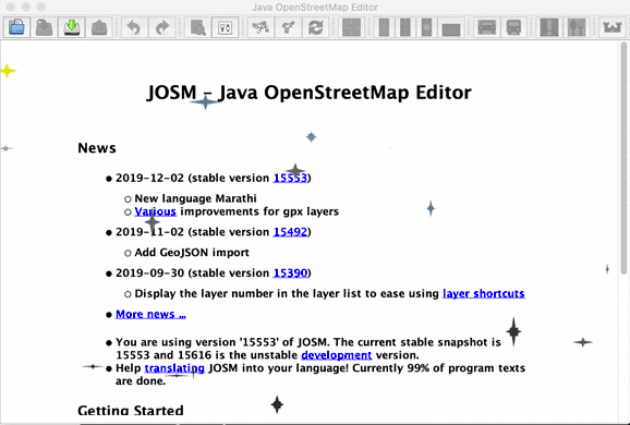 - English : JOSM editor with some Christmas sparkle on the start-up screen