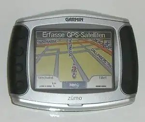 The Garmin zūmo series has been developed for use on motorcycles. They are battery operated and specially configured to be operated with the left hand. The housings are Ipx7 waterproof, fuel resistant, and vibration proof.