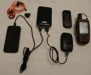 - バッテリパックなど、内蔵バッテリ以外の電源をつなぎます。端末のバッテリの状態にもよりますが、外付けのバッテリをつながない場合、60分の撮影セッション終了時にバッテリ切れをおこすか、ごくわずかしか電源がない状態に陥る可能性があります。