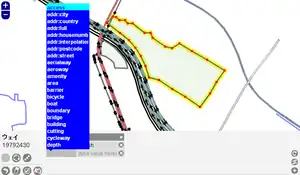 OpenStreetMapでは、ウェイ(way)という言葉が非常にたくさん現れます。この単語、通常日本語に訳すと、'道'になりますが、OpenStreetMapではウェイは単に道だけを表しているとは限りません。詳しくはウェイ(way)を参照してください。また、点(ノード)、リレーションも重要な概念です。リンク先を一通り読んでおいてください。が、簡単に言うと、