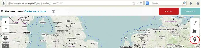 - 地図上にポイントを追加するには、右サイド3番目のボタンをクリックして、目的の位置にポイントを置きます。