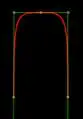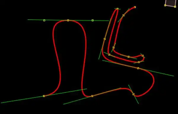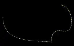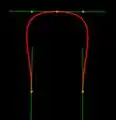Note: Keeping CTRL button pressed, you can modify the tangents. Point nr. 1 in the example below has different angles and lengths left and right Point nr. 2 two different lengths left and right: