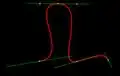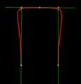 Green lines are tangents with control points at ends, red line is the resulting spline: