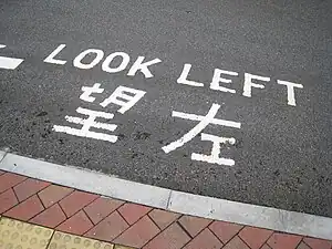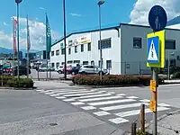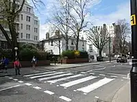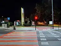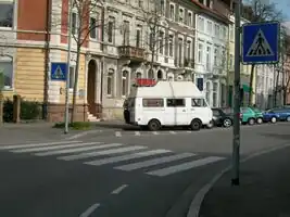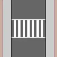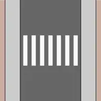 Like a zebra crossing but skipping every third bar to avoid premature tire wear. (U.S.: "double-paired") | ![]() |