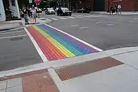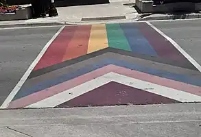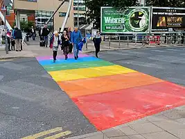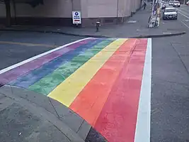 A crossing with rainbow colours, other than in zebra pattern or lines along the crossing. | ![]() |