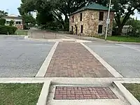 A crossing which is not differentiated by high visibility road markings, but only by a change in surface. Depending on the jurisdiction, this may or may not be considered a proper crossing. Additional details can be added with the established tags surface=* and surface:colour=*.