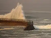 | breakwater | A man-made structure designed to protect a shore or harbour from the sea and waves. | ![]() |