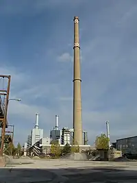 | chimney | A tall distinctive vertical conduit for venting hot gases or smoke, normally found near power stations or large factories. | ||||