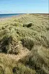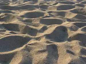 | dune | A hill of sand formed by wind, covered with no or very little vegetation. See also =sand and =beach