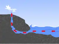 | blowhole | An opening to a sea cave which has grown landwards resulting in blasts of water from the opening due to the wave action | ![]() | |||