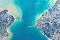 | strait | A narrow area of water surrounded by land on two sides and by water on two other sides. | ![]() |