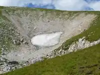 | scree | Unconsolidated angular rocks formed by rockfall and weathering from adjacent rockfaces. | ![]() |