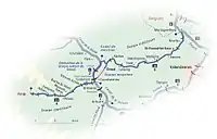 de facto | An established (often signposted) route over multiple highways for a given transport mode (hiking, cycling, bus or motorized traffic) | ![]() | ||
