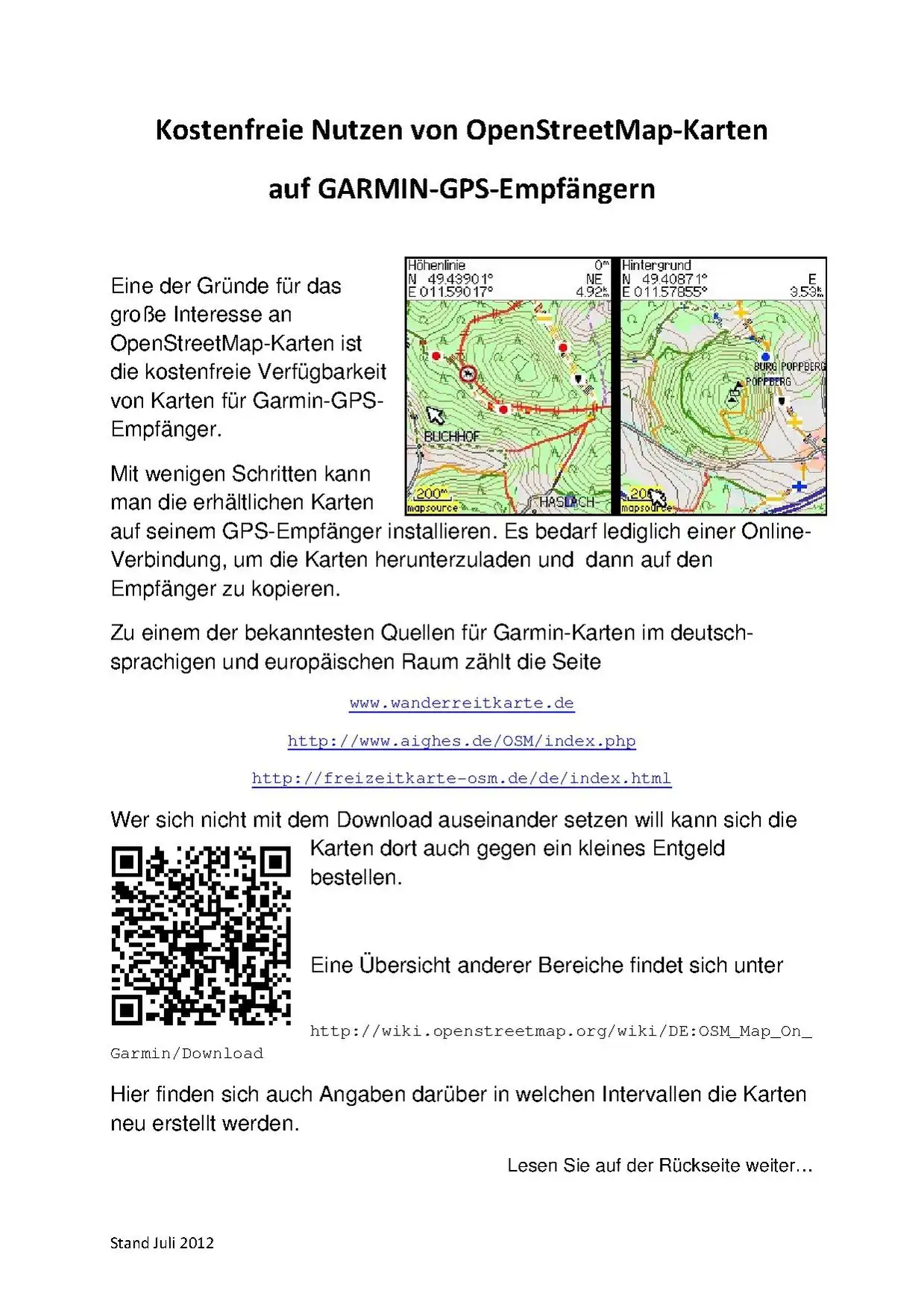 - Anleitung für den Bezug und den Gebrauch der Garminkarte -