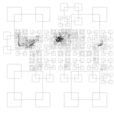 This curious map of the world, shows the result of dividing the OpenStreetMap dataset into quarters until each of these vector tiles is less than 32MB in size. An experiment by Eric Fischer (details)