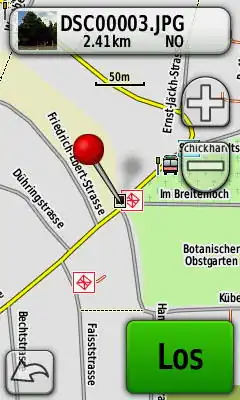Die Bilder weisen bei schlechten Lichtverhältnissen sichtbares Rauschen auf. Aber dafür sind sie aber georeferenziert, das heißt, sie enthalten die Aufnahmeposition in ihren EXIF-Daten. Du kannst auf dem Oregon den Standort jedes Fotos anzeigen lassen oder dich (wenn die Karte routingfähig ist!) zu diesem Standort führen lassen: