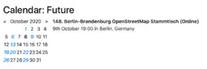 Next up: Calendar Integrations. Thanks to the great work by Jonathan Beliën, a solid foundation has already been laid: He has built a nifty JavaScript library based on the public API that allows to integrate OSMCAL events easily into any website.