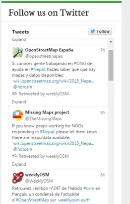 The project developed the infrastructure for weeklyOSM using Wordpress to host the Blog. Twitter and various mailing lists were used to disseminate information. Effective communication was achieved throught eh use of mailing lists, accounts on Rizzonma and , more recently, Slack.com.