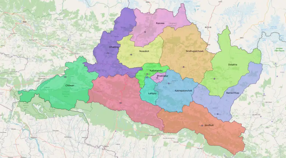 Nepal/Boundaries/Districts of Bagmati Pradesh