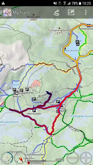 | Android | MyTrails | 1. Lastes ned fra Google Play ( https://play.google.com/store/apps/details?id=com.frogsparks.mytrails&hl=no )