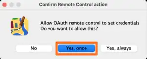 - If you have not already set up any OAuth2 apps in JOSM, you may be asked to allow remote control to set credentials in JOSM. Click Yes, once.