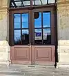 Closed door leading to the entrance hall of a train station. This may provide a challenge for wheelchair users. open=no is assumed if not explicitly tagged oherwise.