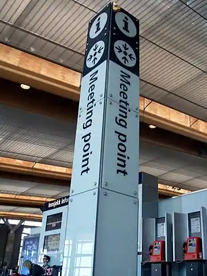 A meeting point is a dedicated area where people can meet. You can find them in public areas with signs to indicate it, like this one: