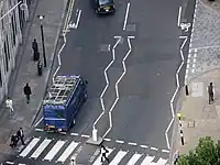 A pattern on a junction that can be driven over but it is not allowed to stop within it (see also box junction).