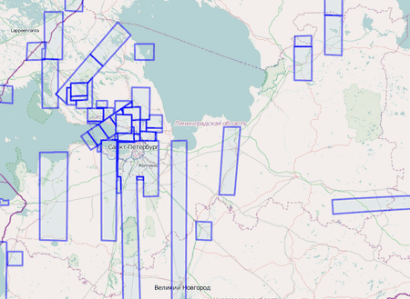 Область полностью покрыта снимками IRS (в основном, начала лета 2010 года, спасибо Сканэксу), а также, разумеется, Yahoo и Landsat — но последние только в низком разрешении. В декабре 2010 года нам разрешили обрисовывать снимки Bing, которыми покрыта большая часть западной половины области (карта ниже). Почти все качественные снимки смещены, перед использованием привязывайте по трекам!