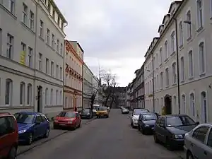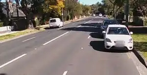 However, it can also happen that the vehicles are parked in a staggered manner — sometimes on one side, sometimes on the other. As the adjacent picture shows, this also has an influence on the driving line of the flowing traffic.