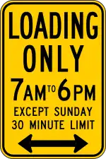 Example: Designated loading zone from 07:00 to 18:00, except Sunday, with a time limit of 30 minutes.