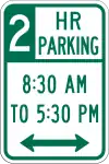 Example: From Monday to Friday between 09:00 to 18:00 parking is allowed for a maximum of two hours.