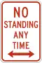 No parking and no stopping are restrictions that are commonly used worldwide with similar traffic signs. Where parking is not allowed, stopping is still possible (e.g. to drop off or pick up someone or something). In contrast, with a no stopping restriction, a vehicle is not allowed to stop at all (unless due to traffic conditions or an emergency). In a few countries (USA, parts of Canada, Philippines), there is also a no standing restriction (also called no waiting in some places, but don't mix it up with the meaning of “no waiting” in the UK, which is used synonymously with “no parking”). The exact meaning of these categories may vary from country to country and should always be used according to local regulations and signage.
