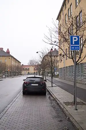 Parking is allowed for a maximum of a designated period of time. The start time is recorded with a parking disc.