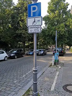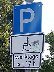 Example: The parking area is reserved for people with disabilities on workdays between 06:00 and 17:00 (if this workday is not a public holiday, because “werktags” includes Monday to Saturday, unless it is a public holiday).