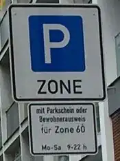 Example: Residential permit for zone “60” or ticket needed from 09:00-22:00, free at night and on Sundays.