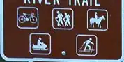 Designation is usually indicated by signage or markings, but not necessarily. For example, sidewalks are usually not signed, even though they are designated for pedestrians. This is why some tags already imply a designation for certain road users, such as highway=footway (for pedestrians), highway=cycleway (for cyclists) or highway=bridleway (for horse riders). Note that there is a disagreement about when these more specific tags as opposed to the more generic highway=path are to be used.