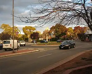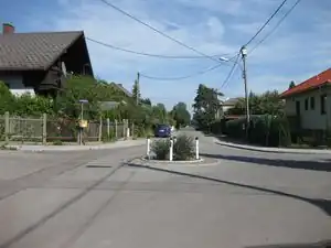 A turning circle is a widened space on a two-way street without any centre island (or at least a fully traversable island). The absence of a centre island allows also large vehicles to turn around.
