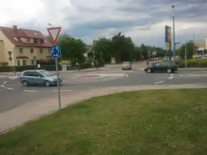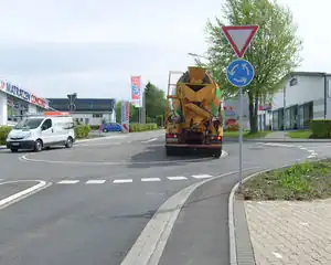 A roundabout is a generally circular (self-intersecting) road junction where the traffic on the roundabout has always right of way.