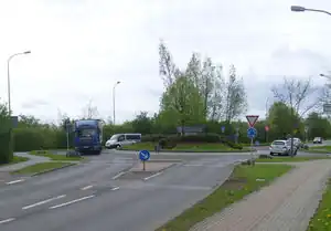 That is, the roundabout itself should be free from all intersection controls including traffic signals, stop signs or stop markings, give-way (or yield) signs or give-way markings. However there exists exceptions in some roundabouts in some cases where there's a special service way passing through the island, reserved to buses/tramways/emergency vehicles (which will have priority to the normal traffic, and for which there may be traffic signs requiring vehicles on the ring to give the way; in normal times these give-ways and traffic signals are off).